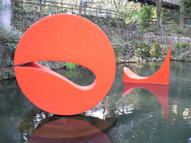 続いてマルタ・パン作「浮かぶ彫刻3」。鯉のいる池に見事に調和してたたずむ彫刻。